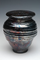 In Raku firing each piece of pottery is taken from the kiln red hot, the molten glaze silken and glowing. Then it is placed in a bed of straw or leaves in an air-tight container. The dry plant material immediately bursts into flame and the “reduction chamber” is sealed. The flame and the smoking, oxygen starved atmosphere transform the glaze surface creating the unique, seemingly ancient, colors and textures of raku. So each of our Raku fired urns is special and one of a kind.
